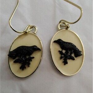 These elegant earrings feature a striking raven on a cream background, perfect for you or a gift for a funky friend. ❤️