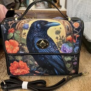 Raven Crow Handbag Crossbody Dark Cottage Romantic Halloween Goth vegan leather