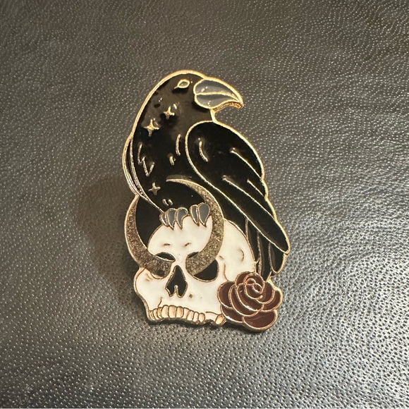 Brand new raven on a skull with a rose pin approx 1”