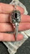 Pendant of a facted black onyx stone set in an ornate 925 silver plated crow or raven skull.