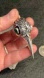 Pendant of an ornate crow skull with faceted dark green gem stones as eyes. 925 silver plated.