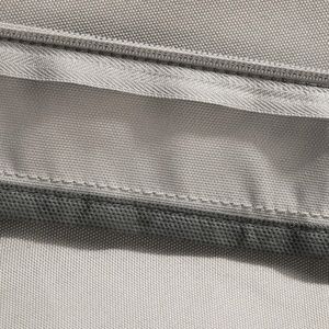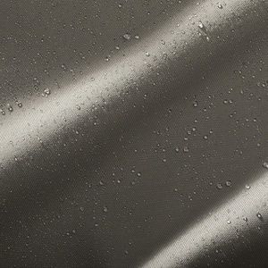 Water-repellent coating and backing resists spills and helps keep out the rain