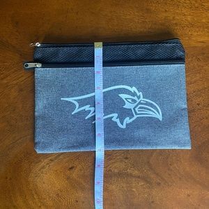 Raven graphic logo gray 2 compartment zippered school supply pencil case. Back to school, college, office