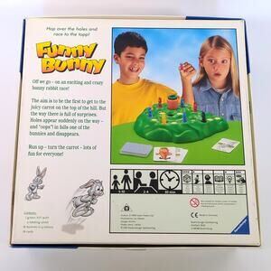 For sale is a Ravensburger Funny Bunny board game, a classic family-friendly game perfect for all ages. Race your rabbits up the hill to reach the giant carrot, but watch out for the holes!
