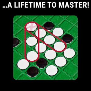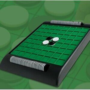 Othello Board Game, also called Reversi, is a two-player strategy game played on an eight-by-eight green and black checkerboard. The goal of the game is to capture your opponent's pieces by sandwiching them between yours and flipping their color to yours. It starts with four pieces in the center, two white pieces and two black pieces. The players alternate turns, placing pieces diagonally, horizontally, or vertically to trap opponents. The game ends when the board fills, and the player with the most pieces wins. It's all about strategic positioning, foresight, and flipping moves. It is simple to learn but tough to master! Get it and have some family fun!