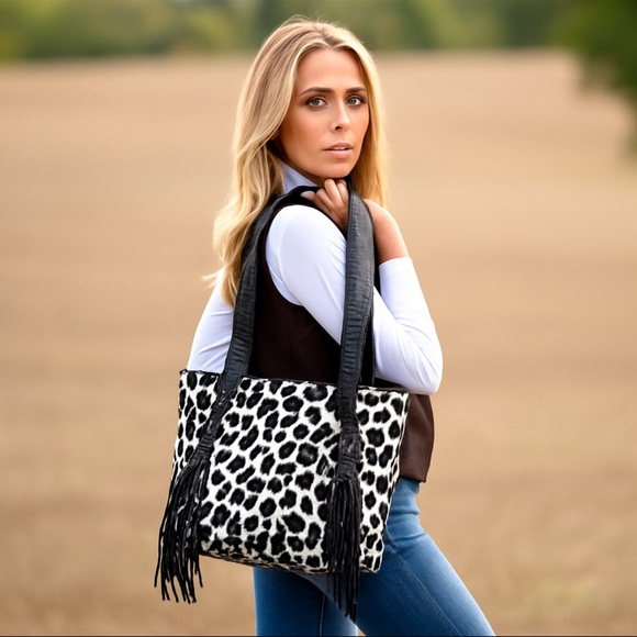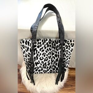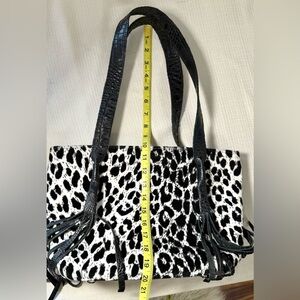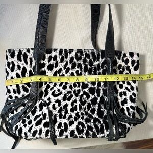 Handmade Ravani Cowhide Print Black and White Fringe Bag – Like New
