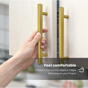 The Ravinte Brushed Gold Cabinet Pulls are a modern and stylish addition to any cabinet hardware collection. With a center-to-center measurement of 5 inches and a sleek brushed finish, these cabinet pulls are both functional and visually appealing. The pack of 10 ensures that you have plenty of hardware on hand for all your cabinet needs. Made of high-quality brushed gold material, these cabinet pulls are sure to add a touch of elegance to your home decor.