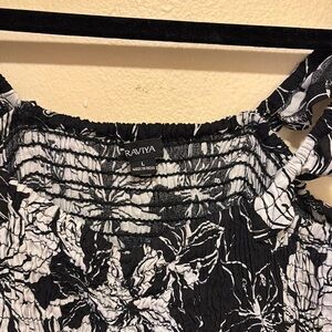 Embrace casual elegance with this Raviya sundress, showcasing a striking black and white floral pattern. Designed with a flutter cap sleeve and an off-the-shoulder neckline, this maxi dress is perfect for resort wear. Its flowing silhouette and lightweight fabric ensure comfort and style for any relaxed occasion.