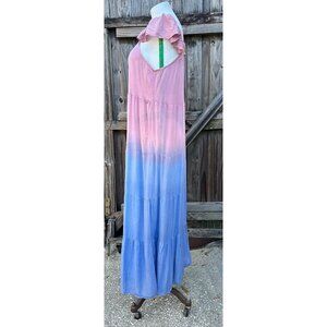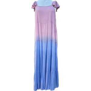 Raviya Dress Mauve Ombre Maxi Flutter Cap Sleeveless Pink Blue Tiered NWT