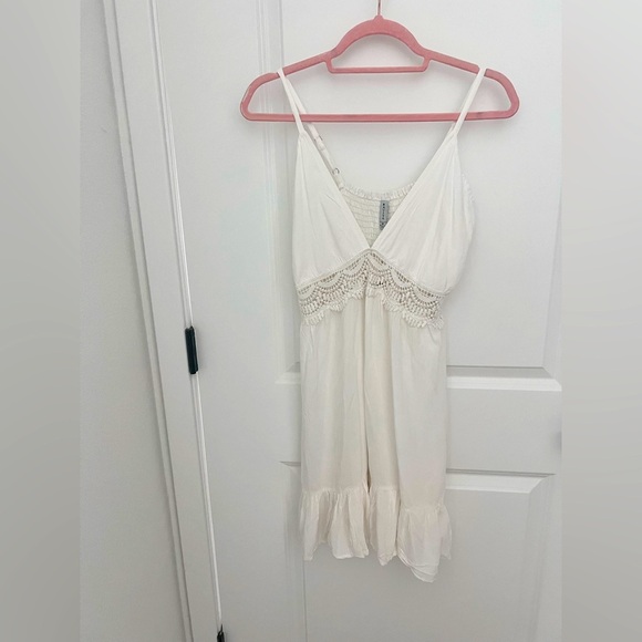 Raviya Medium Sleeveless Flutter-Hem Cover-Up Dress Swim White New Size Medium