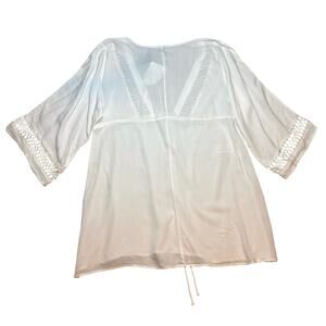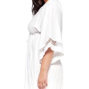 Raviya White Crochet Trim Kimono Swim Cover-Up Dress L Resort Boho