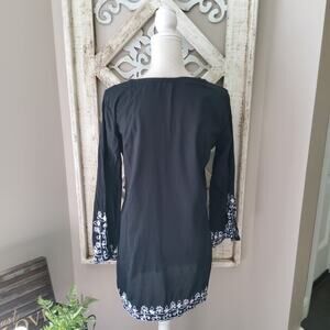 Grab this size medium black and white tassel tie floral embroidered cotton tunic coverup now.