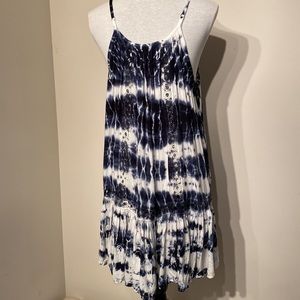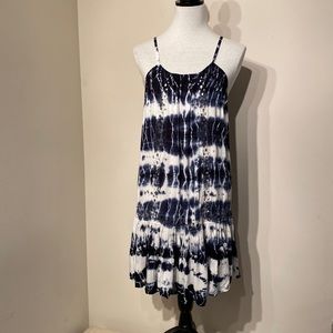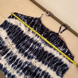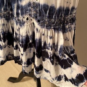 Raviya tie dye spaghetti strap crocheted trim flowy tunic style mini dress