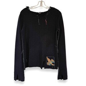 Raw 7 Vintage Cashmere Sweater Hoodie Black Retro Y2K Distressed Large