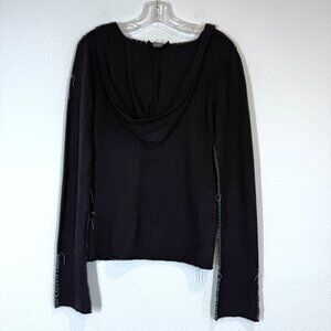 Vintage Raw 7 100% Cashmere Black Y2K Hooded Sweater, Rare in a Tag Size Large. Made in USA.