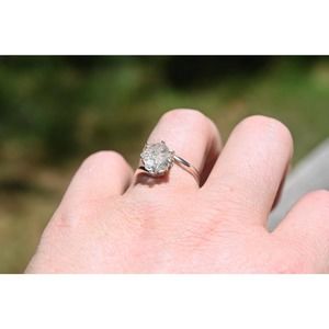Elegant and simple raw diamond ring, the stone is completely natural, uncut, and fresh from the earth. The setting is solid 925 sterling silver. This rough diamond ring is unique and one of a kind.