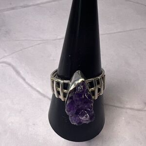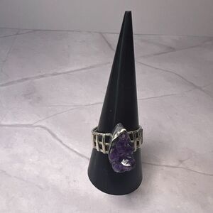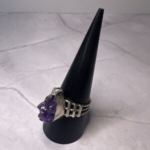 Raw Amethyst & Sterling Silver Statement Ring Sz9
