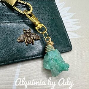 Raw Aventurine drusy geode key card wallet holder keychain accessories