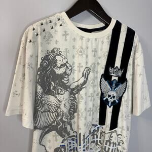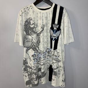 Raw Blue T- Shirt Graphic Print Crew Neck Short Sleeve White Grey Men's 3XL