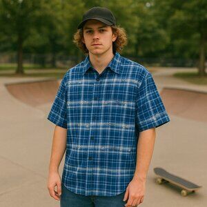 Brand: Raw Blue VTG Button Down Check Print Streetwear Shirt