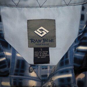 Raw Blue VTG Button Down Check Print Streetwear Shirt Men's L Blue / White