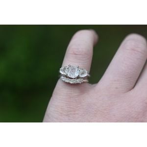 Raw Crystal Engagement Ring - Silver Stacked Diamond-Look Ring - Handcrafted