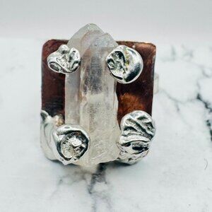 Raw Crystal Statement Ring Upcycled From Copper Baking Dish & Silver Spoon 7.75