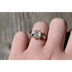Raw Diamond Emerald Engagement Ring Rough Uncut Anniversary Silver Rusti…