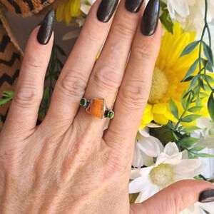 Raw Fire Opal & Natural Chrome Diopside In Sterling Silver. Sz.10