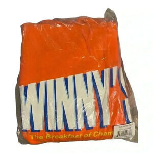 Bright orange hoodie with 'Winny's' logo. Comfortable and stylish. Perfect for casual wear.