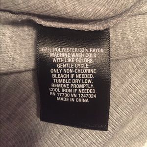 Grey racerback v neck with raw hem. Middle seam in the front with an additional layer for a nice flattering look. Great condition and only hung to dry. 67% polyester 33% rayon.