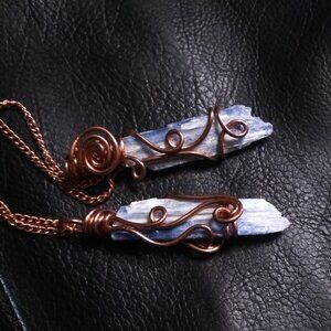 Kyanite daggers are soft and a bit fragile—handle with care to preserve its crystalline matrix. I included a plain copper chain with this dainty and feminine pendant - app. 18" long.