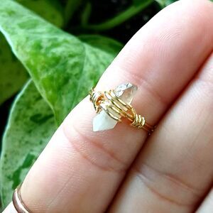 Raw Smoky Quartz Crystal Point Ring, Gemstone Wire Ring, Size 6