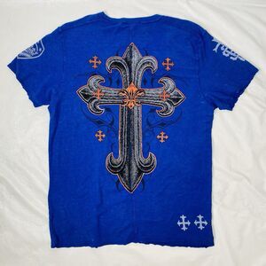 Raw State Premium XXL READ Blue V Neck Short Sleeve T Shirt Redemption Cross Y2K Graphics
