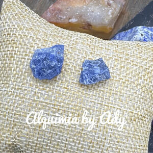 Raw drusy Sodalite chunky maxi stud earrings/maximalist