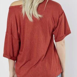 Wore a few times. No rips, tears, or stains. Bought at Buckle. Knit v-neck top Rust color.