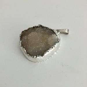 Beautiful raw smoky quartz druzy pendant in electroplated silver setting. The color varies from gray to smoky taupe, with lots of sparkle.