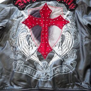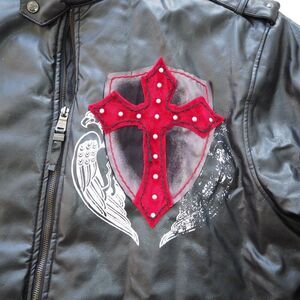 Brand: Raw Blue Vintage Y2K "Royal Dignity- Cross" Faux Leather Bomber Jacket