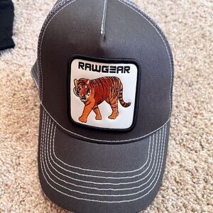 RawGear Mens Trucker Hat One Size Gray with Tiger Patch Adjustable Fit Outdoor