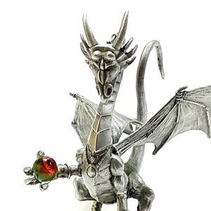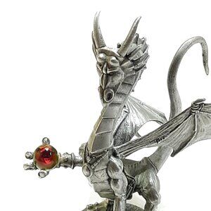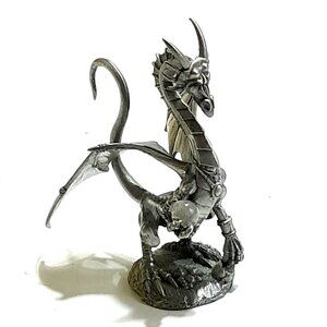 This exquisite Rawcliffe Partha pewter figurine showcases a majestic silver dragon from the Council of Wyrms, perfect for collectors and fantasy enthusiasts.