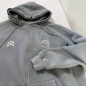 Rawgear Zip Up Fleece Hoodie Jacket Mens L Gray Ape Logo Long Sleeve