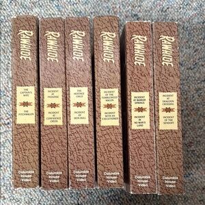 Set of six Rawhide VHS tapes. Brown and cream design. Classic Western series.