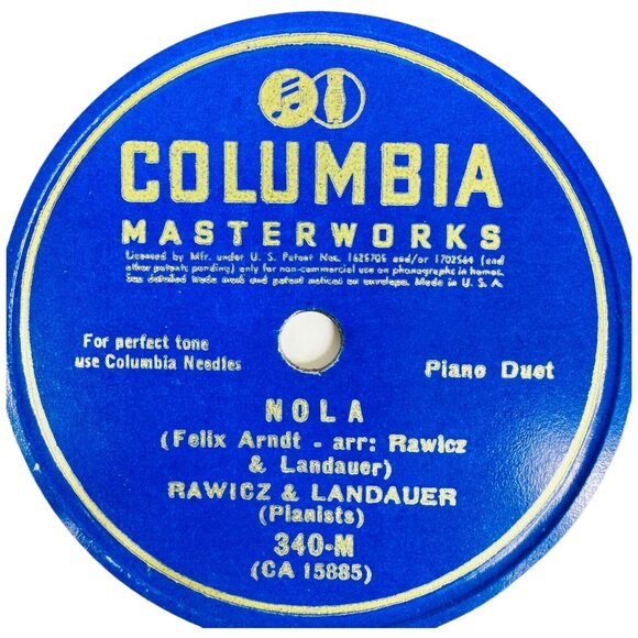 Rawicz & Landauer Nola 10" Shellac Columbia 340-M 78 RPM Piano Duos