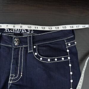 Rawkn Y2K Jeans Womens 28 Skull Studded Low Rise Denim Key Closet Skater Rocker