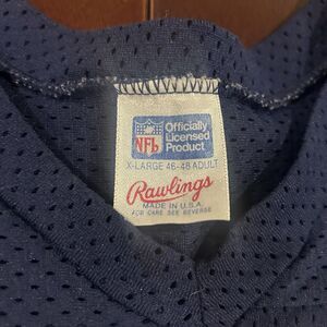 The Rawlings NFL Jersey in XL size features the iconic William Perry #72 The Fridge of the Chicago Bears. This officially licensed jersey is designed for unisex adults and proudly manufactured in the United States. It is a must-have for any Chicago Bears fan looking to show their support in style during the regular season games. The blue color and player name detail make it a standout piece of fan apparel for any football enthusiast.