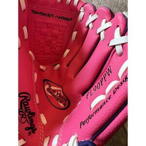 NWOT Rawlings Player Series PL90PPW 9 Inch Tee Ball Glove Pink Right Hand Throw RHT. Basket web 9" right handed thrower for t-ball softball baseball girls. Pink and purple in color. New without tags. Youth size