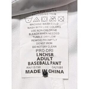 Stay game-ready with these Rawlings Pro-Dri adult baseball pants in size Medium. Designed for performance and durability, these white pants feature reinforced knees, dual rear pockets, and a pro-style look. Made from 100% polyester for moisture-wicking comfort. New with tags.