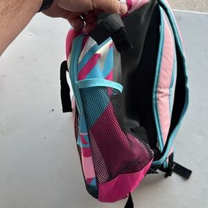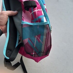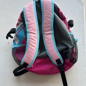 Rawlings Pink and Blue girls sodtball bat Backpack. One side is used and ripped where the bat goes, the other bat holder is in good condition. Perfect for tee ball girl!