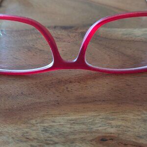 Ray Ban Eyeglasses Frames. RB 7053 5525, 52-17-140. Red plastic frames with metal arms.