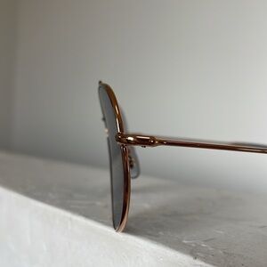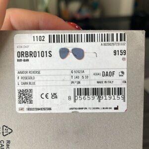 Dark blue lenses with rose gold frame. Lens size 59. Unisex